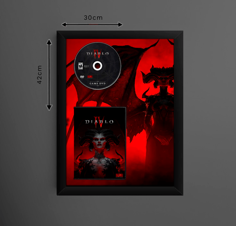 Imagina ter em sua parede uma obra que carrega toda a intensidade, a escuridão e a grandiosidade do universo de Diablo IV. Este quadro é produzido a mão, com riqueza de detalhes, para transformar a paixão dos jogadores em uma peça de arte única.